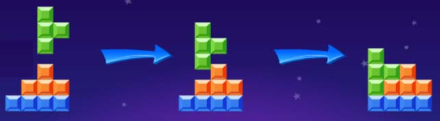 El objetivo es hacer caer los bloques irregulares e ir rellenando huecos para conseguir hacer líneas. Una vez creadas, desaparecen. Si consigues eliminar cuatro líneas en un movimientos, felicidades, acabas de hacer un Tetris.